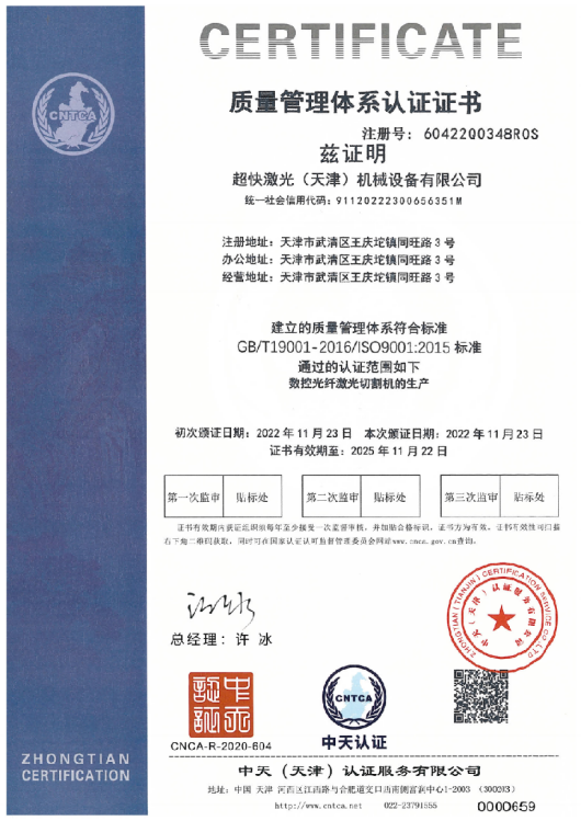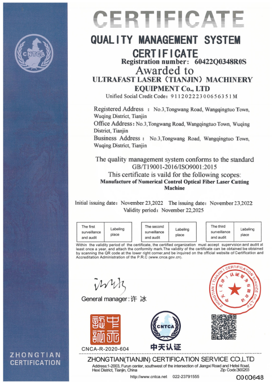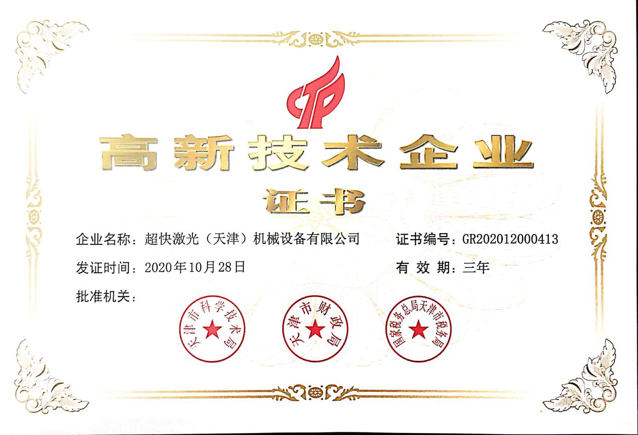 超快激光擁有一支專業(yè)從事激光切割設(shè)備研發(fā)設(shè)計(jì)的強(qiáng)大技術(shù)團(tuán)隊(duì),獲得多項(xiàng)實(shí)用型設(shè)計(jì)專利,已通過(guò)ISO9001質(zhì)量管理體系認(rèn)證證書(shū),并且獲得國(guó)家頒發(fā)的高新技術(shù)企業(yè)證書(shū)。